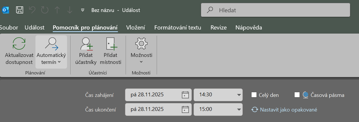 - Potvrďte termín – Outlook vše uloží.